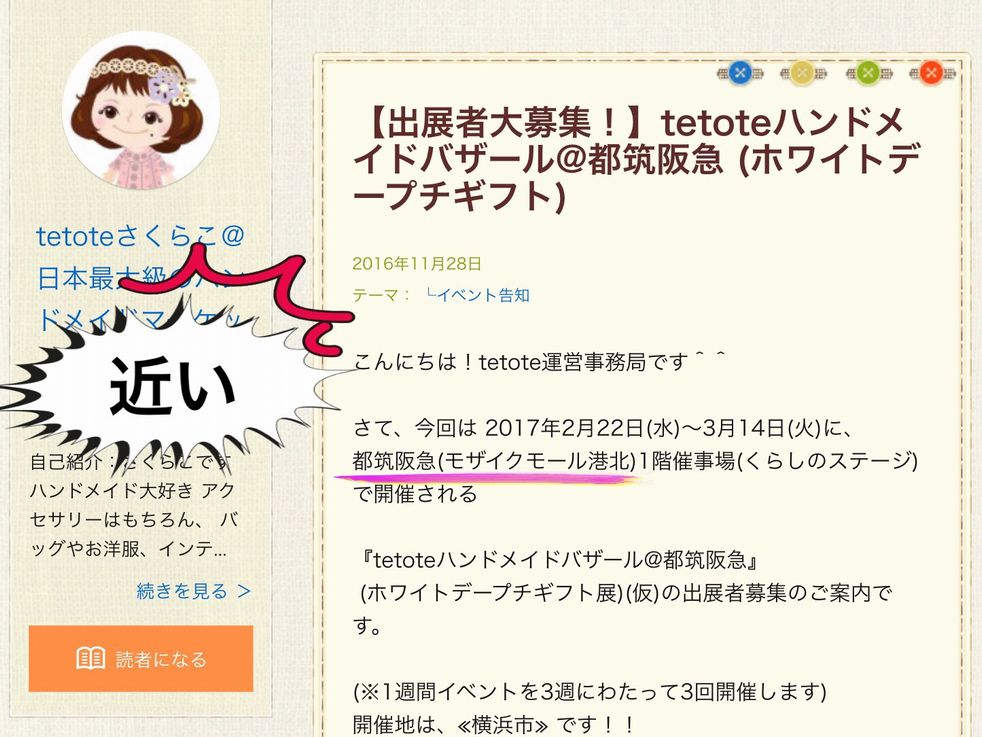 昨年末、tetoteさんからイベントの出展者募集の案内がきていました。場所は横浜市都筑区と近い!、ということで軽い気持ちで応募させて頂いたところ・・、