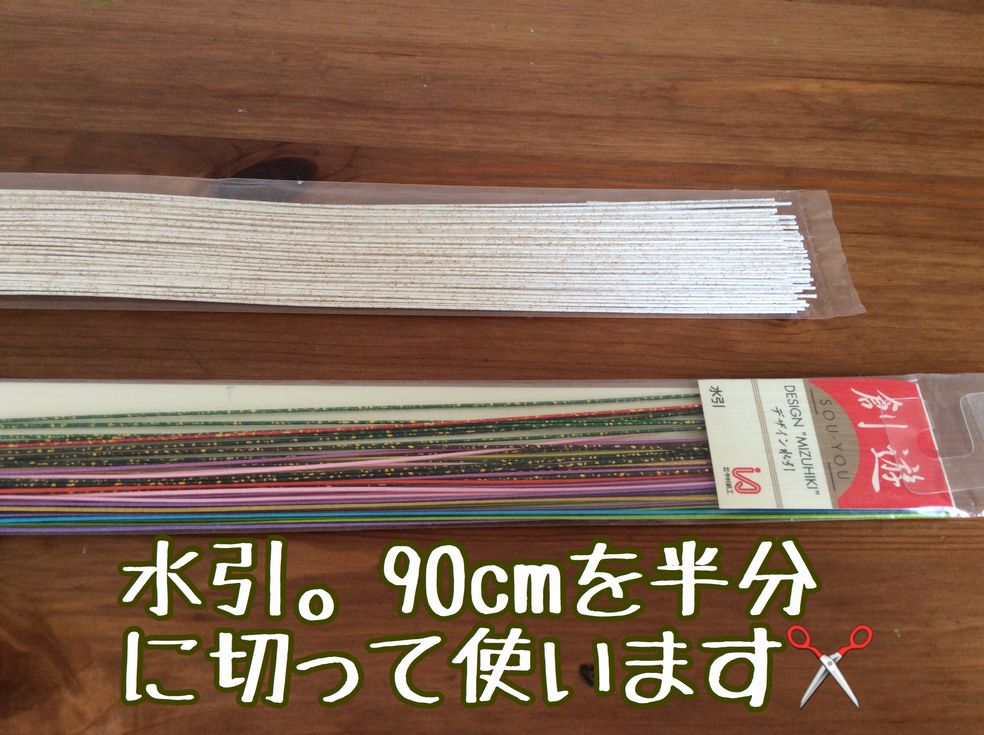 扇につける飾りは水引で作成しました。長いので半分に切って使います。